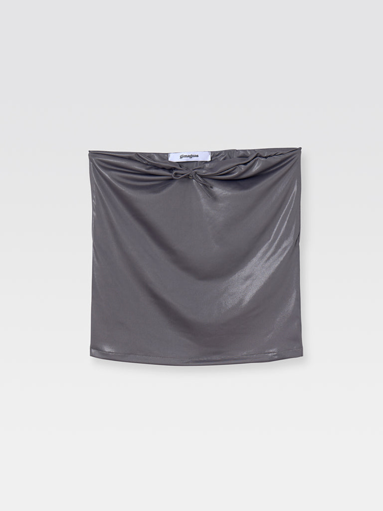 Grey shiny bandeau that can be worn either as a top or as a skirt. Very elastic fabric with bow detail that can be adjusted for a more fitted look.