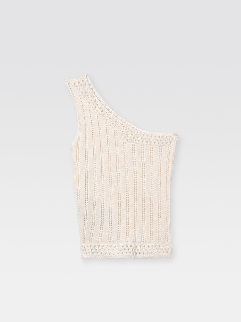 Asymmetrical, one shoulder top in white. Made in Spain.
