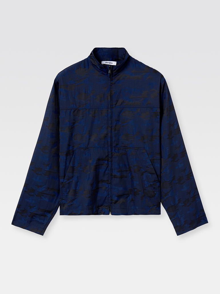 Navy camouflage windbreaker zip up jacket with side pockets, cut to a regular fit.