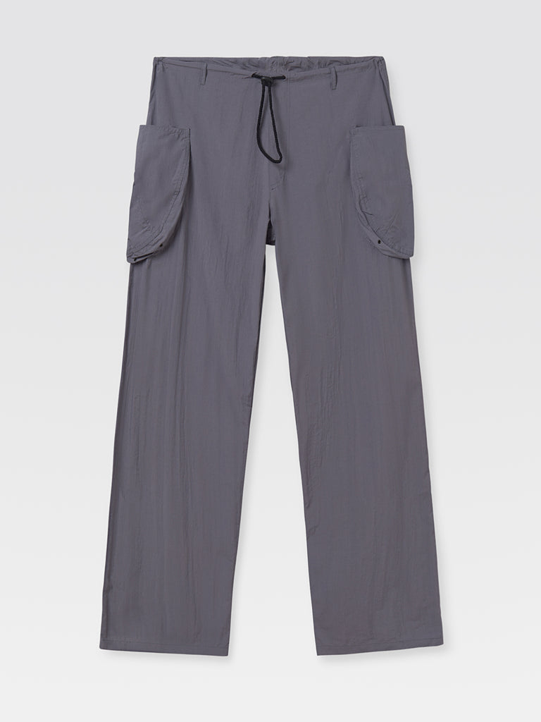 Oversized grey trousers with external 3D pockets at both sides. Technical Fabric with adjustable hem. Made in Spain.