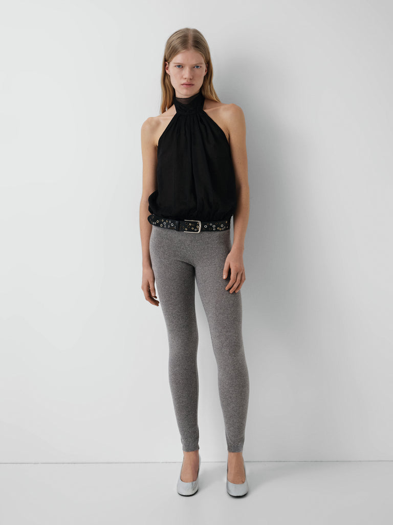 Grey soft-touch leggings with ribbed waistband.