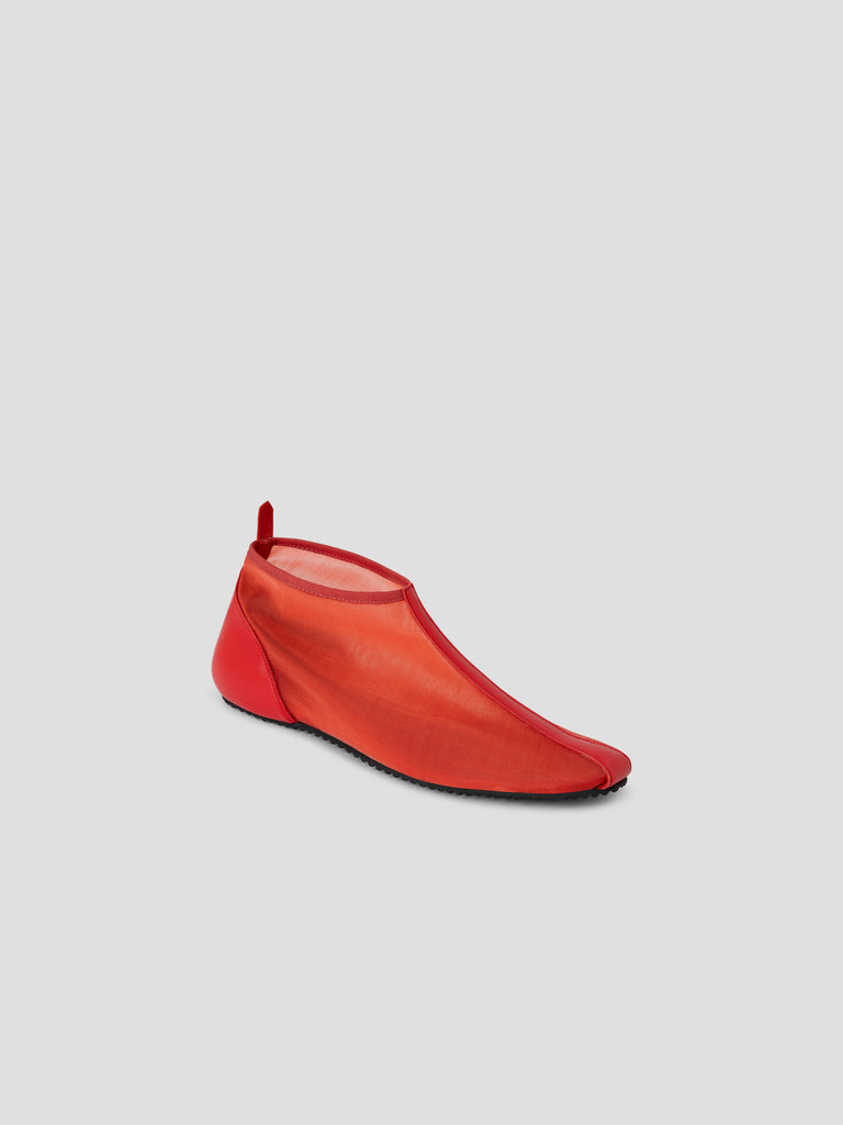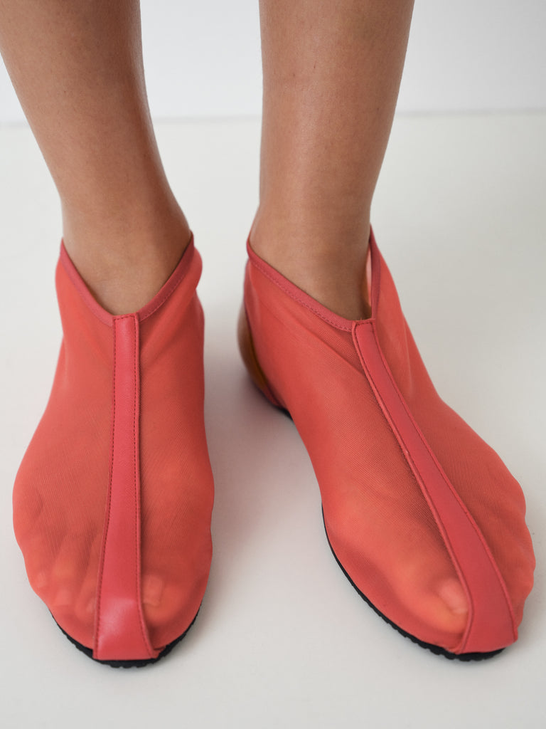Red mesh ankle boots with a second-skin fit.