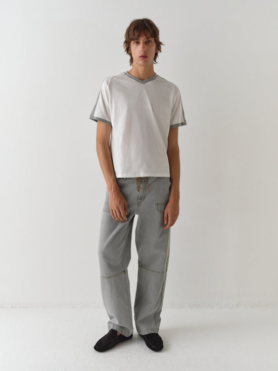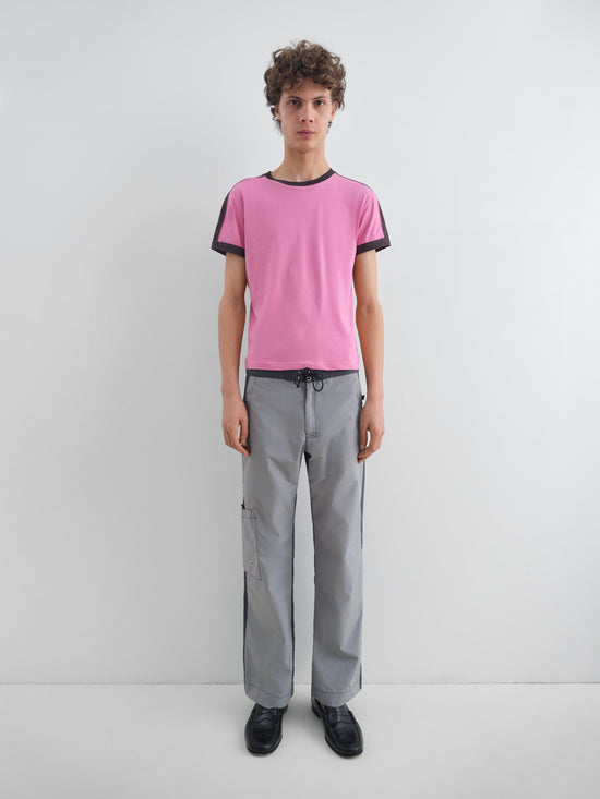 The Gimaguas men’s trousers — Relaxed and tailored silhouettes in contrasting textures. Baggy cuts and structured fits, finished with utility pockets and drawstring fastenings.