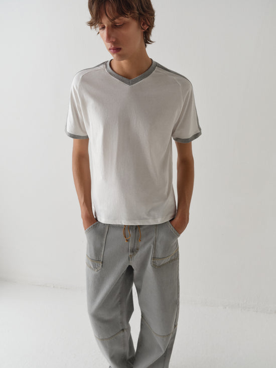 The Gimaguas men’s t-shirts — Short and long sleeve tops designs in cotton. Color-blocked constructions, graphic prints and details like studs and patchwork details. Shoulder and cuff contrasts add dimension to relaxed and structured fits.