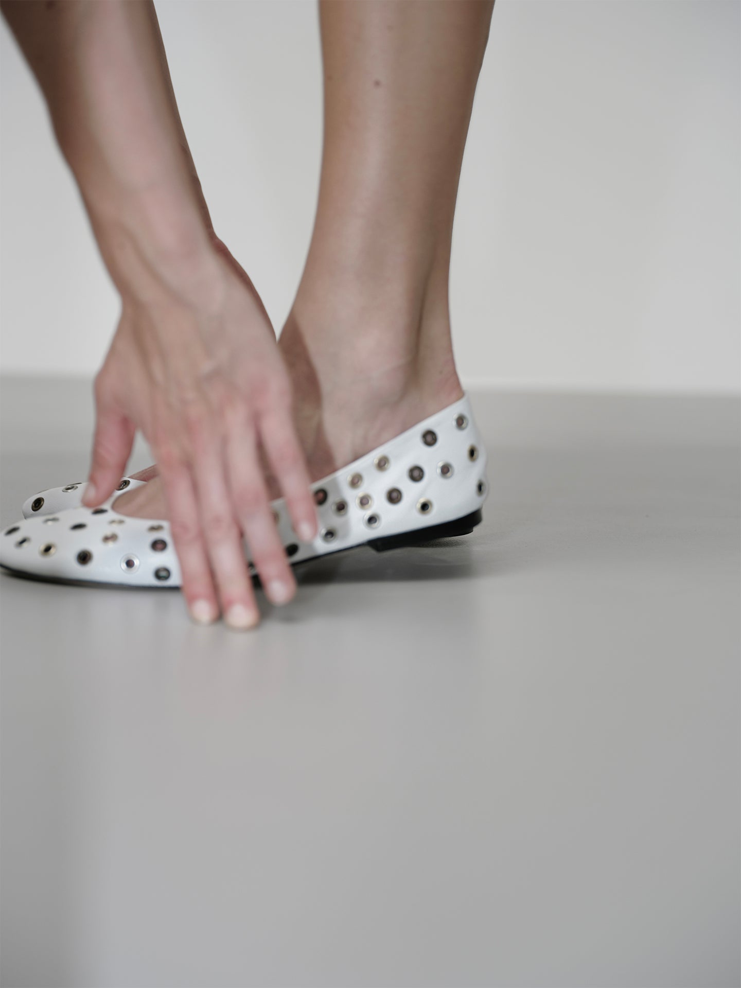The Gimaguas women’s shoes — A selection of ballet flats, high boots, and sandals in leather and technical fabrics like neoprene or satin. Featuring studs, perforations, and crafted details, redefining essential footwear.