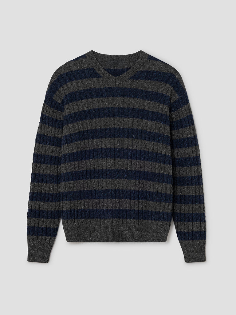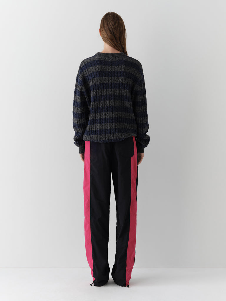 Grey and blue textured jumper with oversized fit.