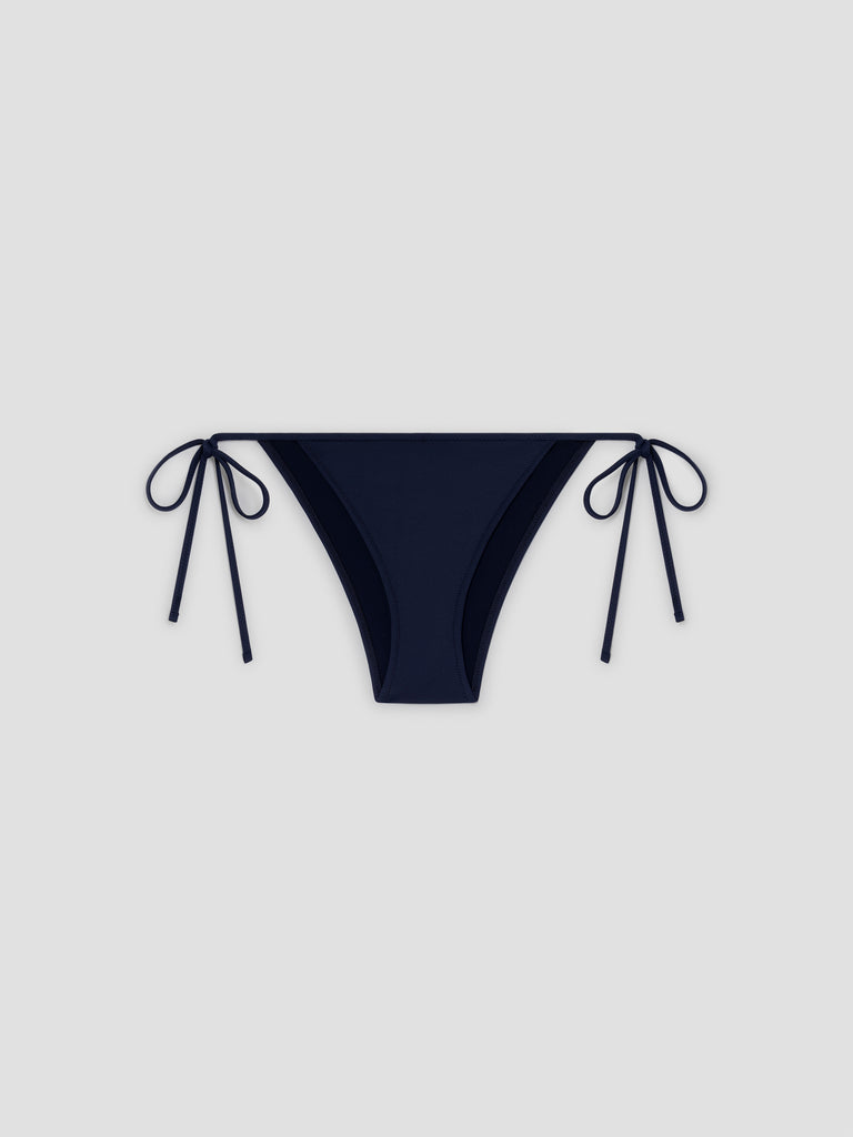 Navy bikini bottom with adjustable side ties.