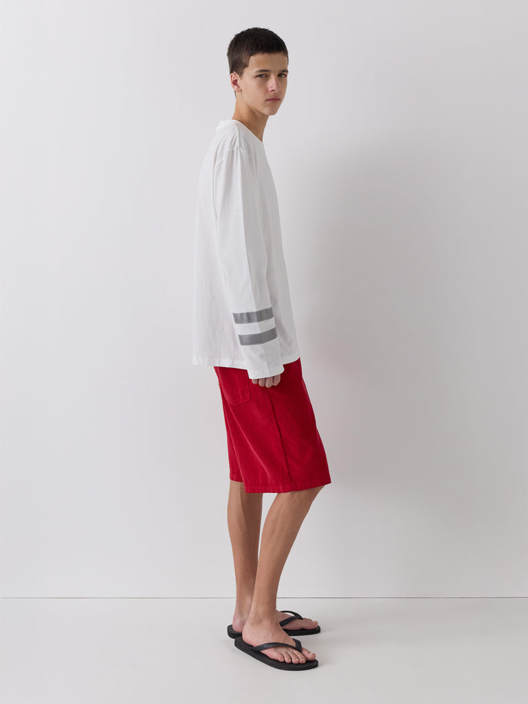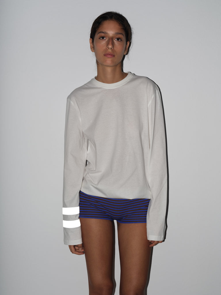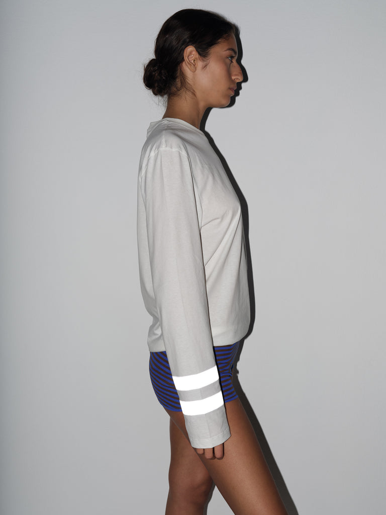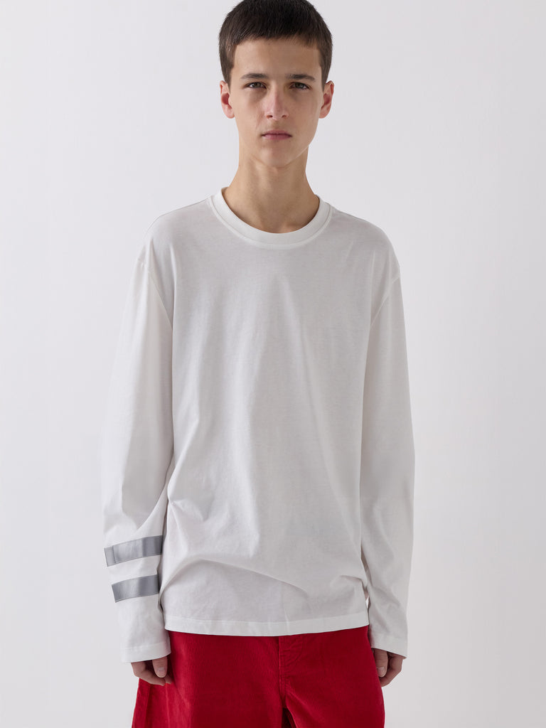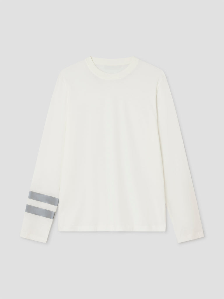 White long-sleeve t-shirt with reflective white double stripe.