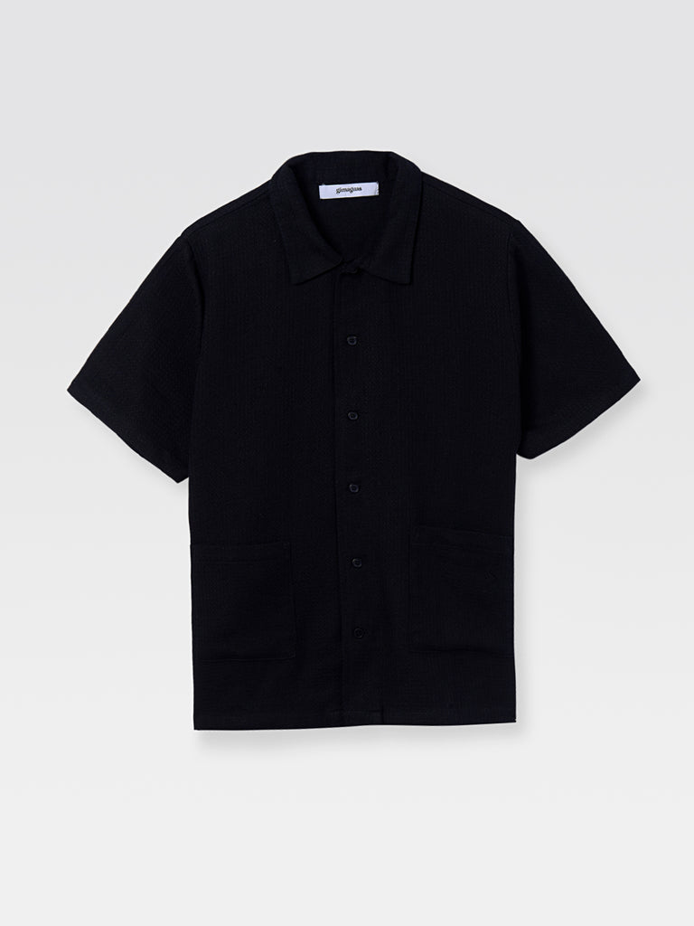Classic wide-fit buttoned waffle black shirt with two front pockets, and a button closure. Shaped to a slightly oversized silhouette. Crafted with 100% cotton.