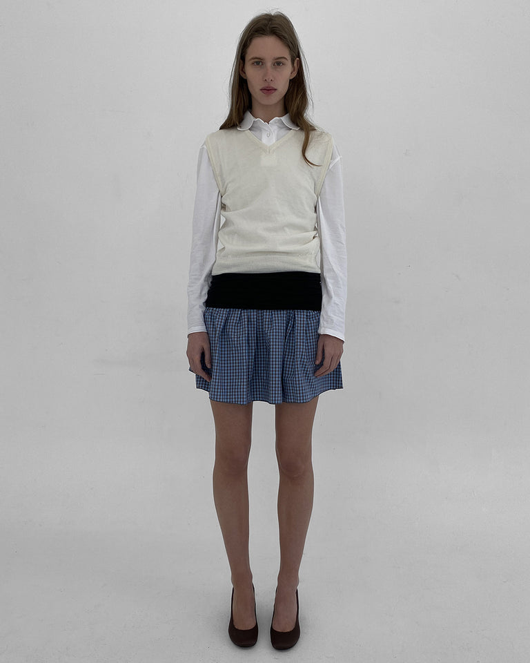 Off-white wool-knit vest with V-neckline.