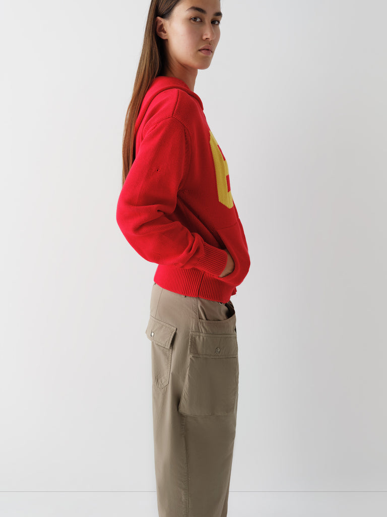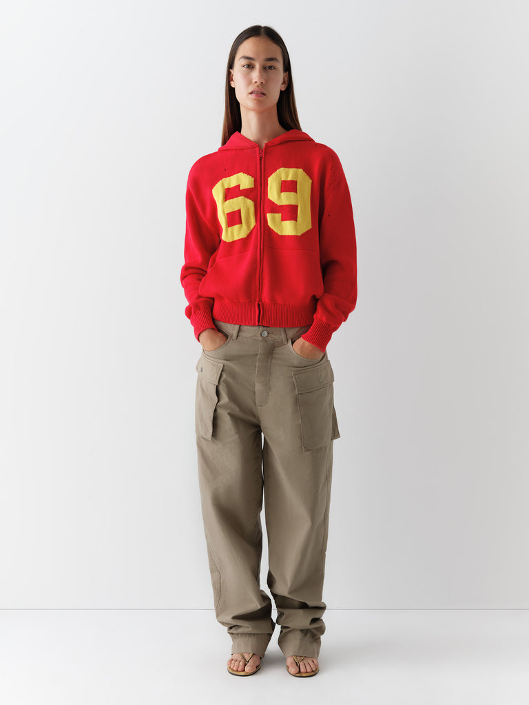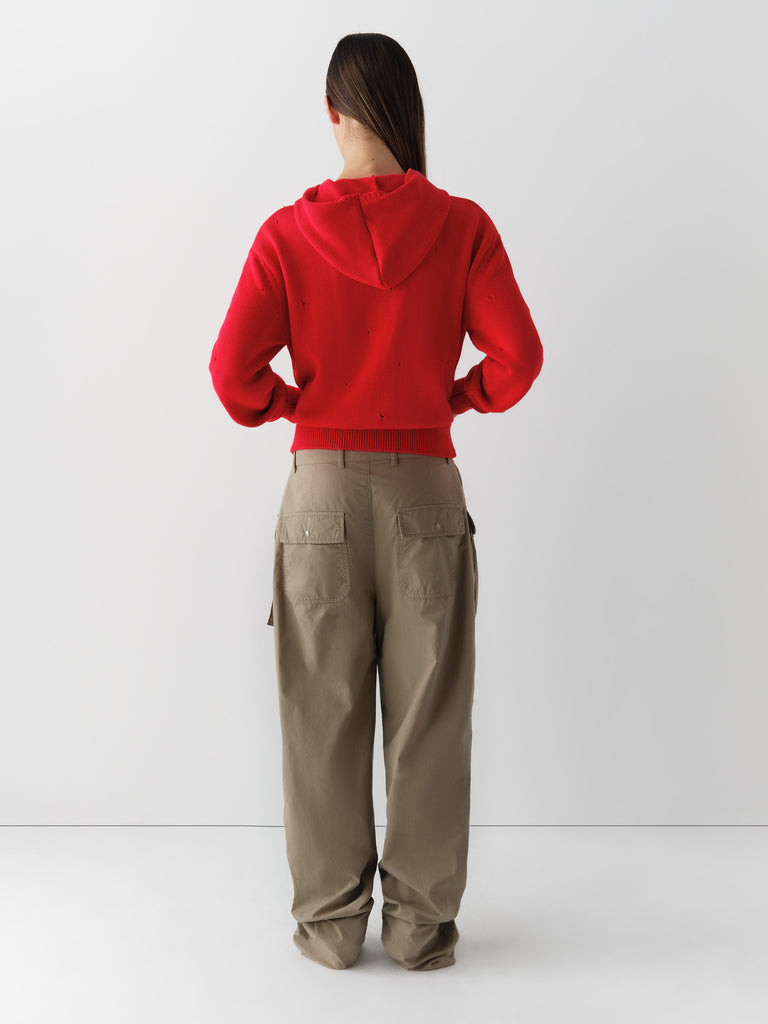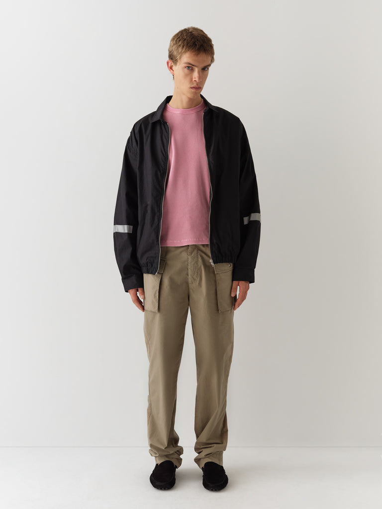 Khaki straight-leg trousers with cargo-inspired pockets.