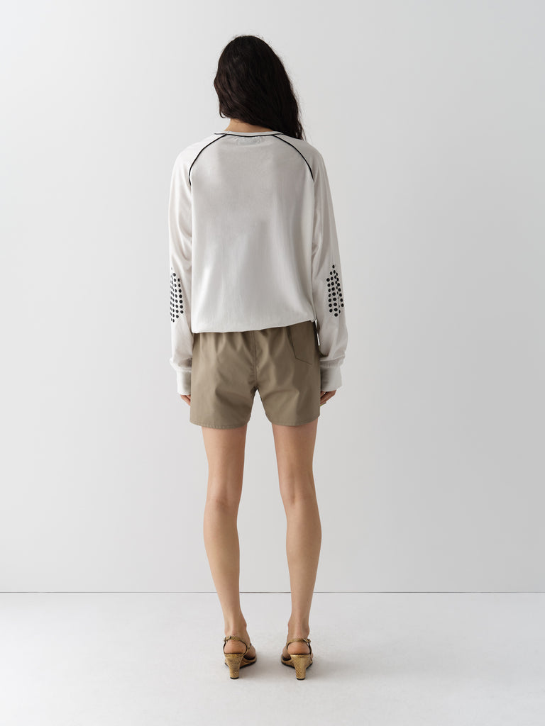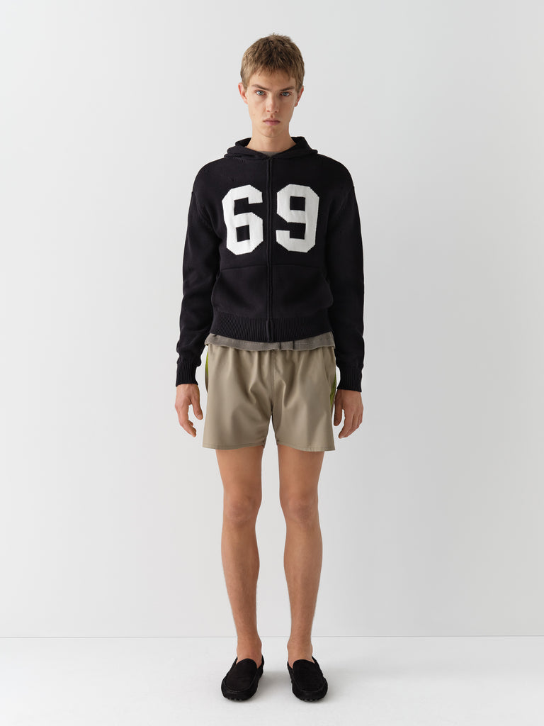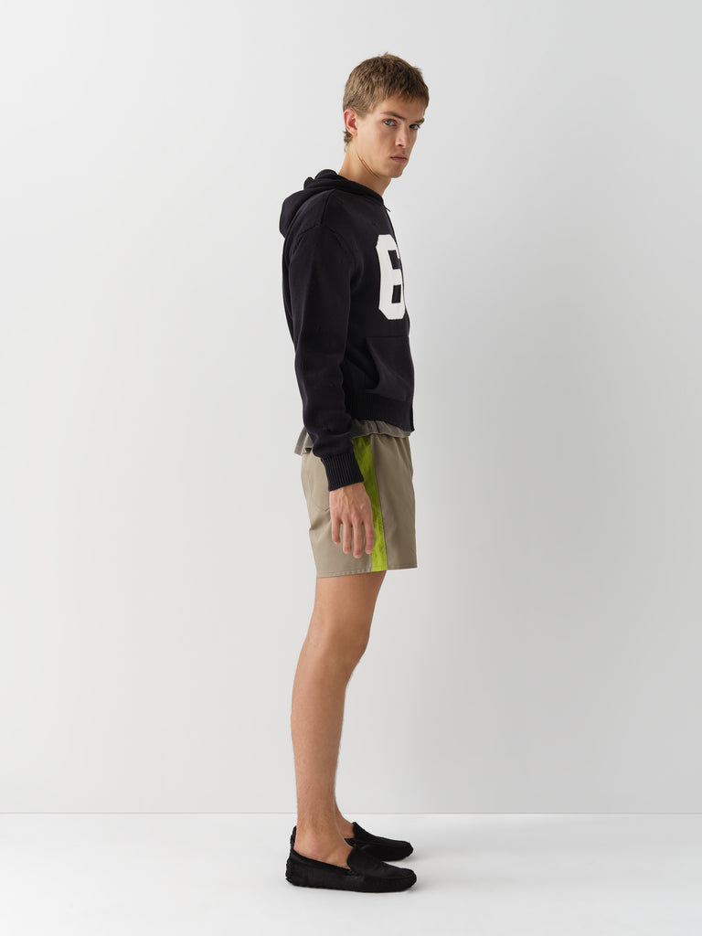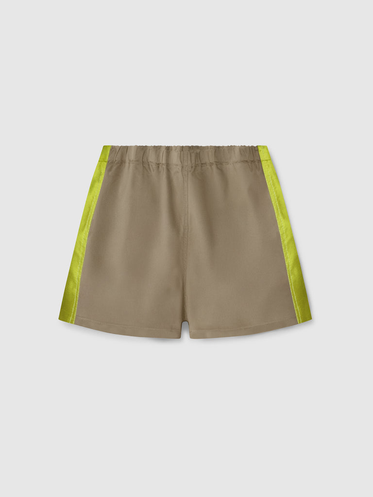 Khaki structured shorts with lime satin side stripe.