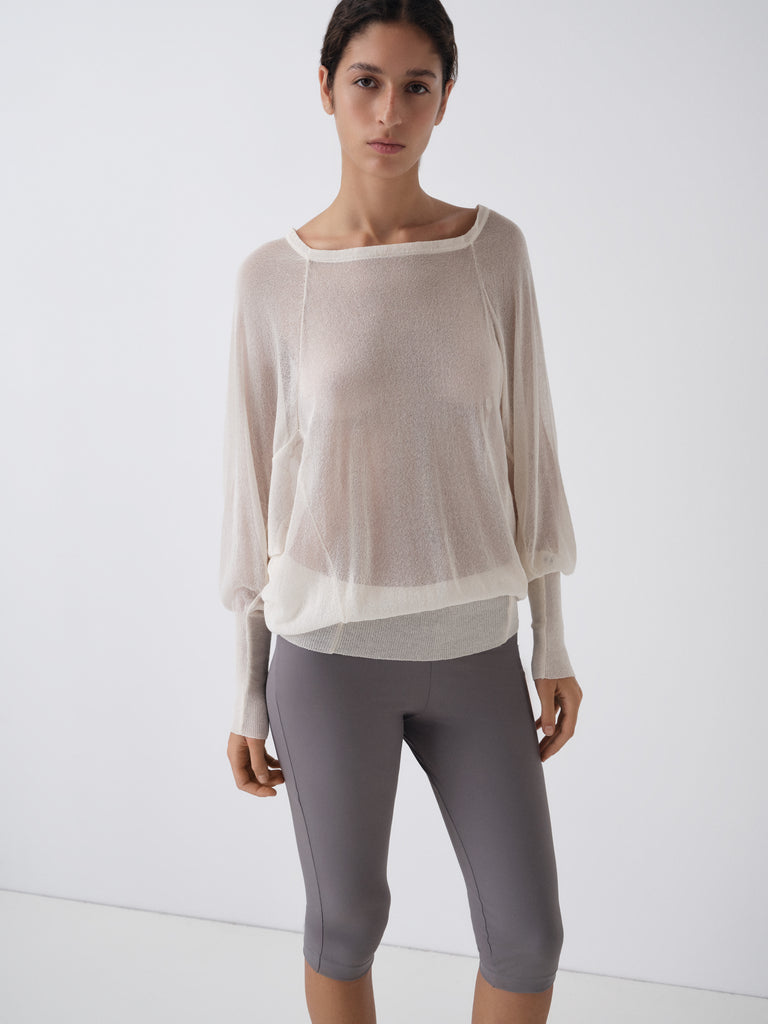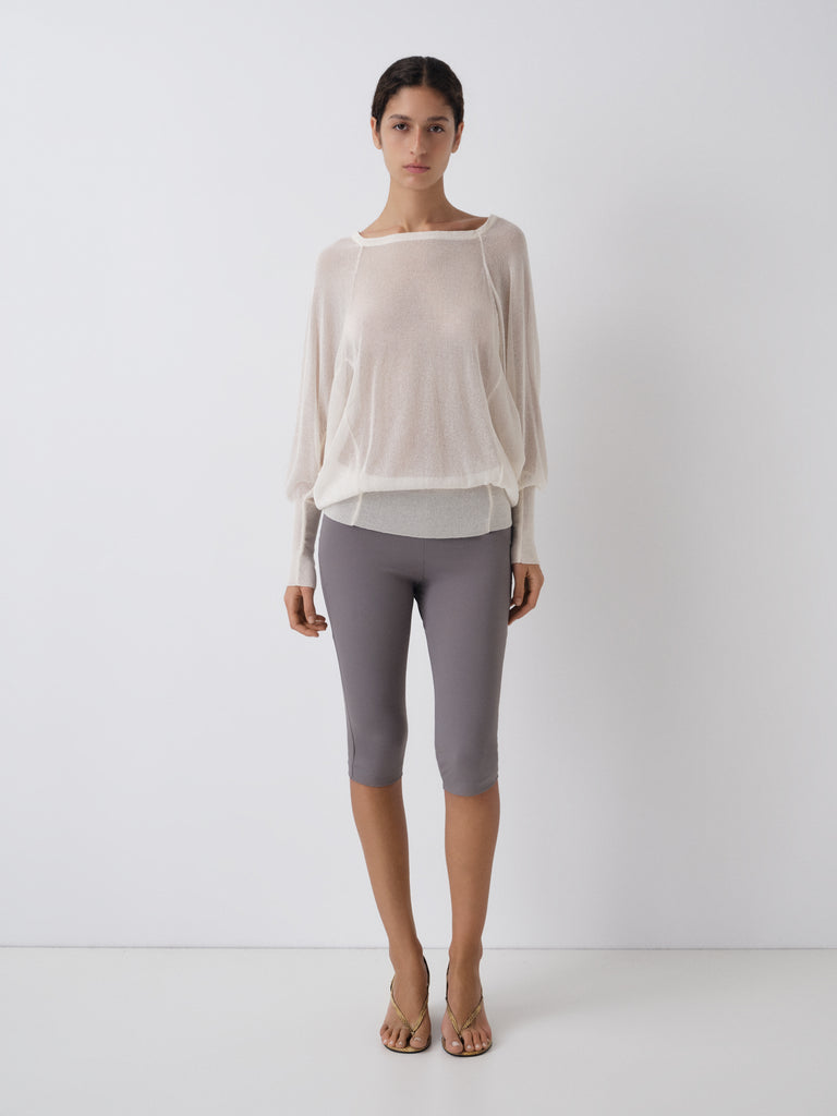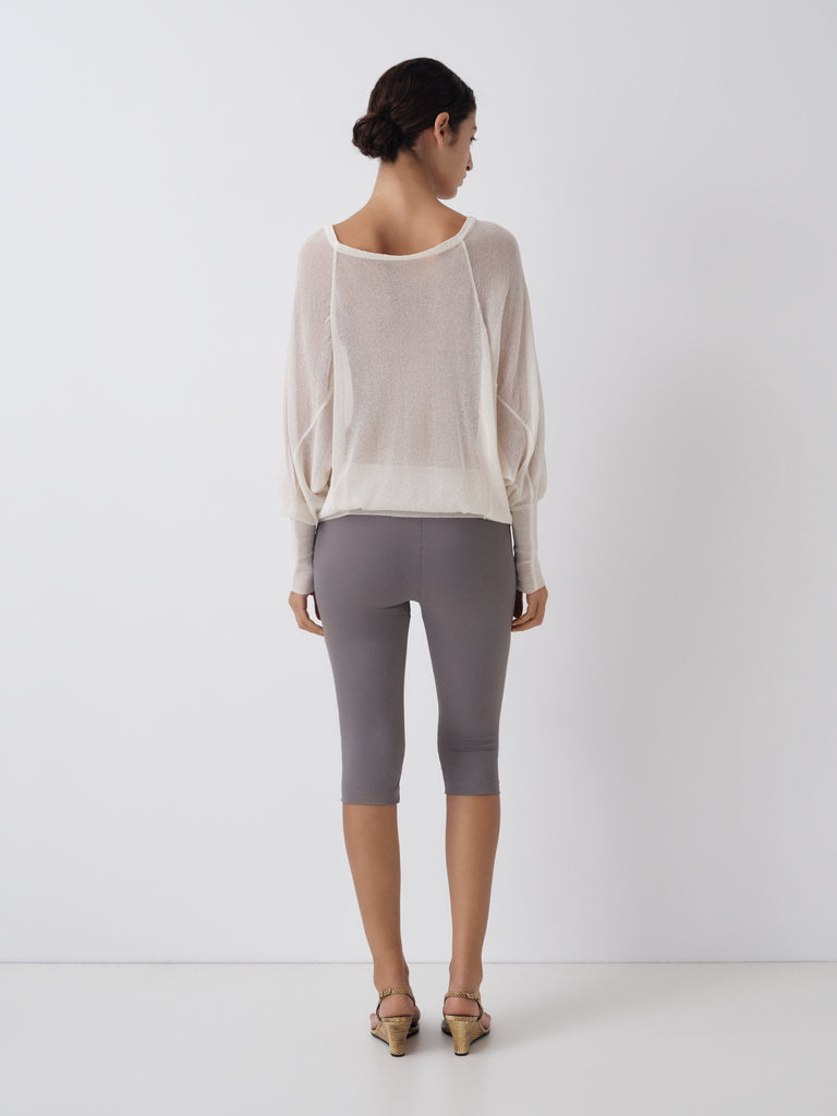 Grey capri trousers with a fitted silhouette.
