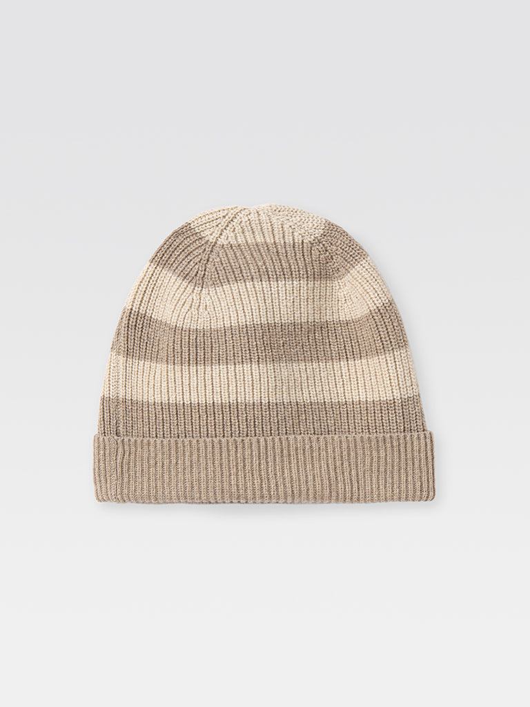 Wool striped beanie hat in beige.