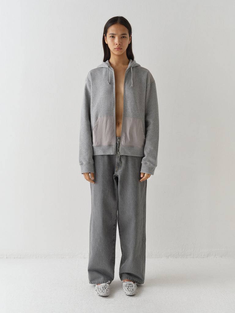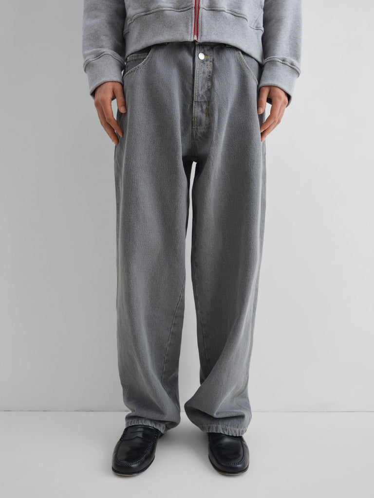 Grey faded baggy trousers with low-rise fit.