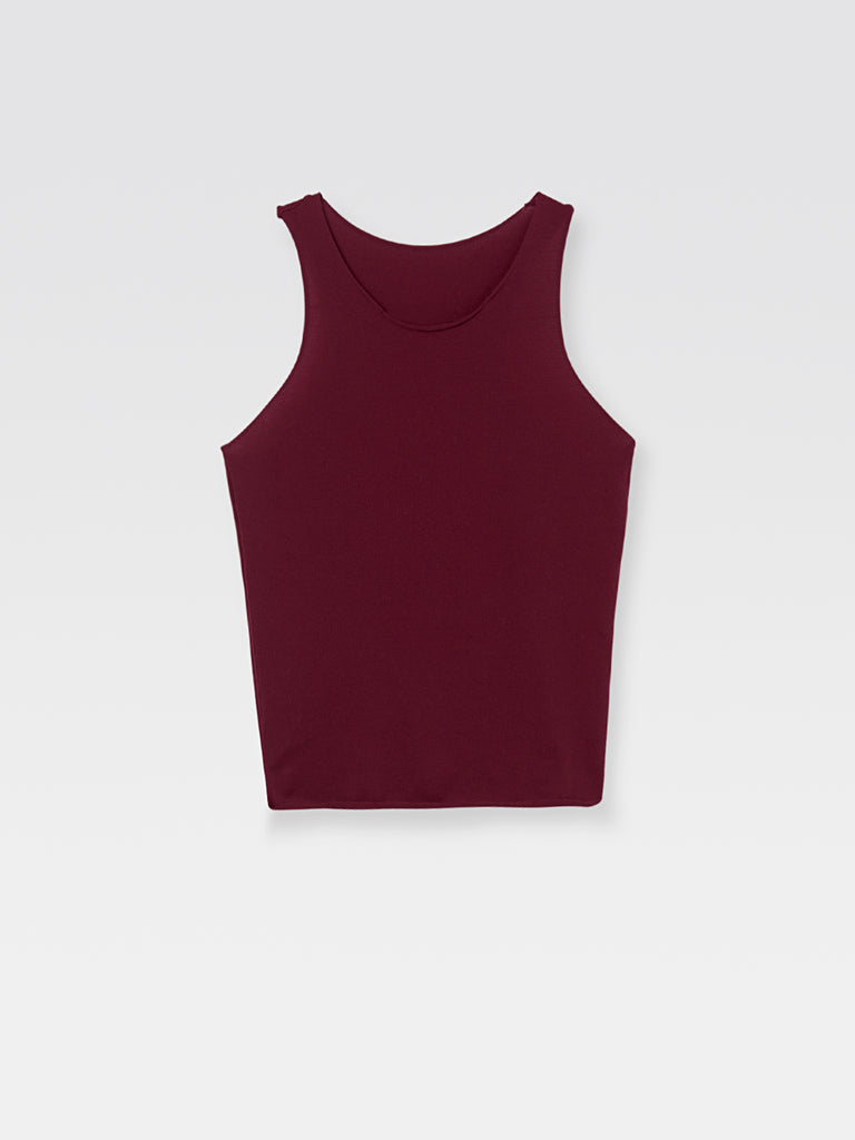 Seamless fitted tank top in burgundy with the Gimaguas logo at the back.