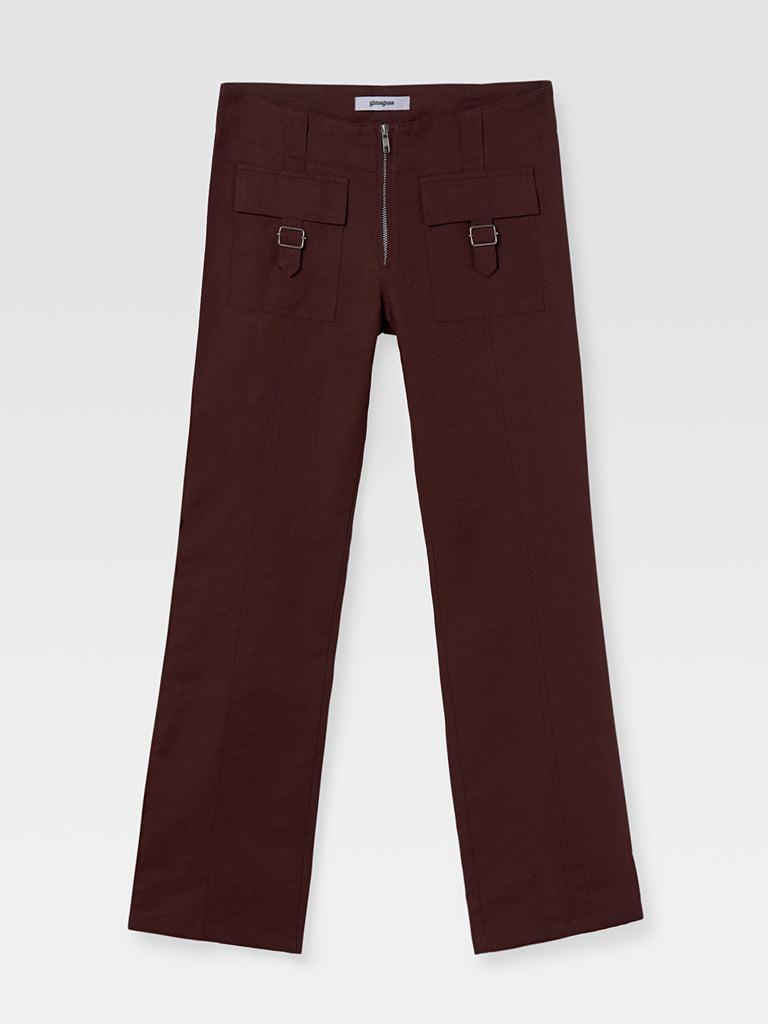 Low-rise pants cut to a straight fit with frontal invisible zip closure.
