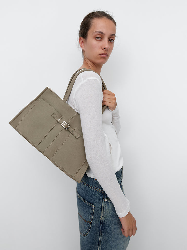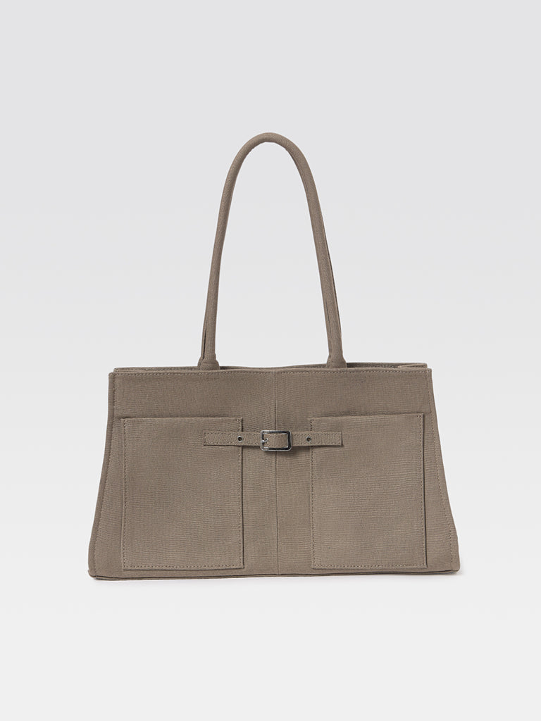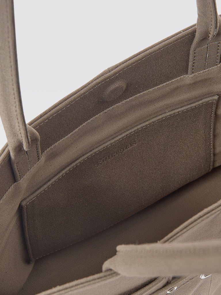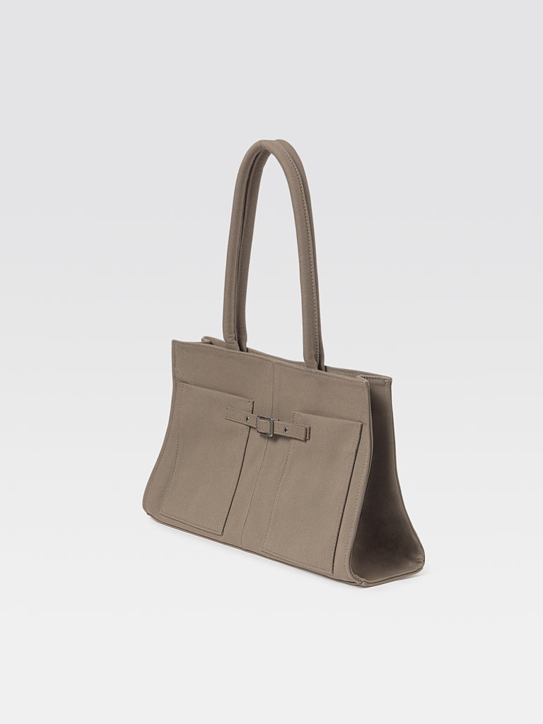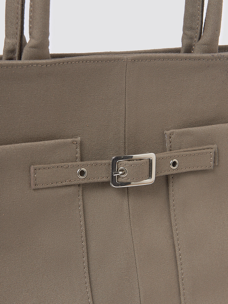 Structured women’s bag crafted from sturdy brown canvas.