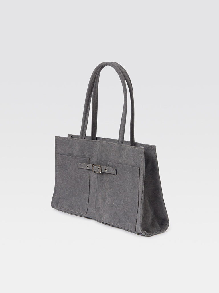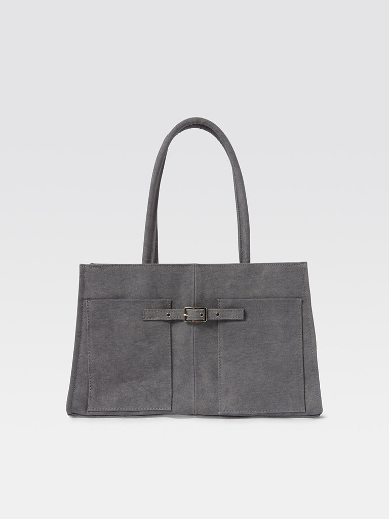 Designed with rounded fabric handles, a decorative buckle detail on the front, two exterior pockets and one interior pocket. Fully lined with soft cotton and secured with a discreet magnetic closure, perfect for carrying your laptop. Finished with the signature Gimaguas metallic logo on the back.