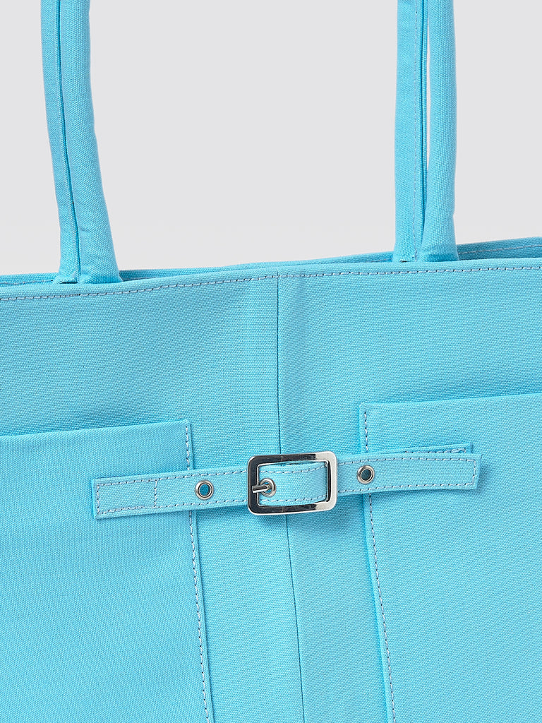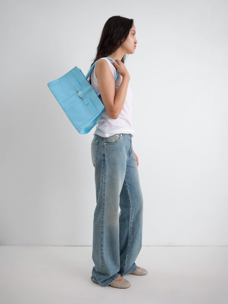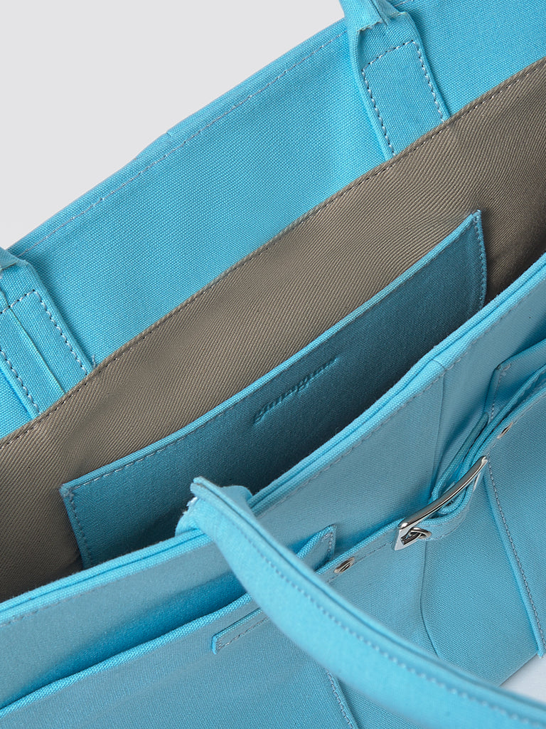 Structured women’s bag crafted from sturdy turquoise canvas.