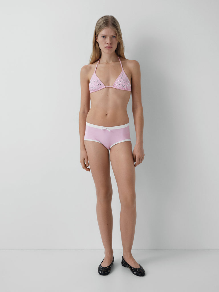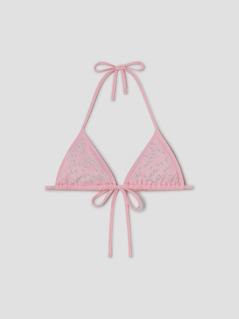 Pink bikini top with mixed-size silver studs.