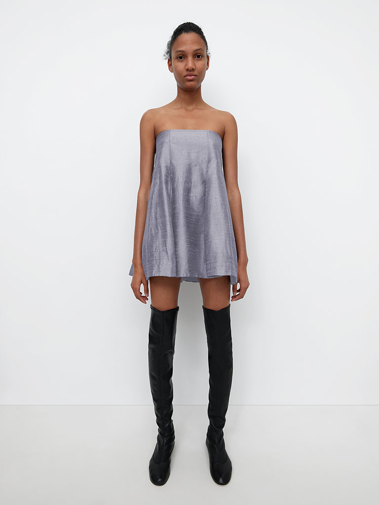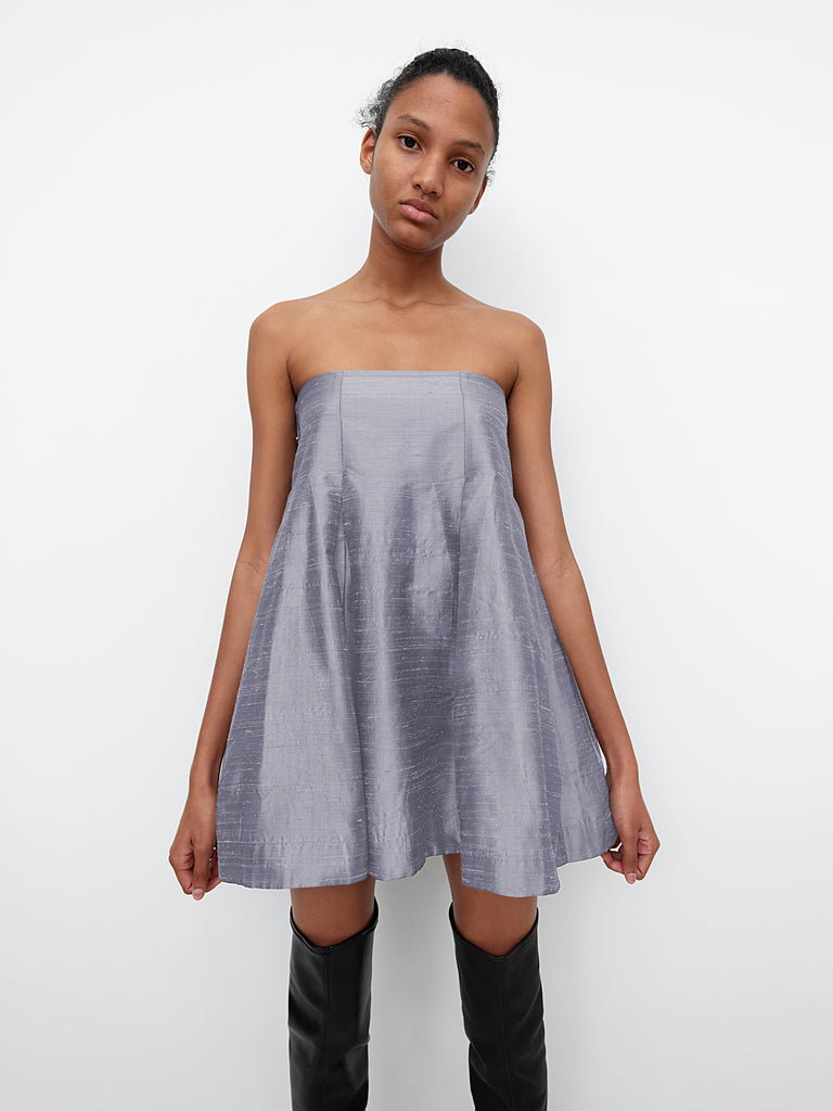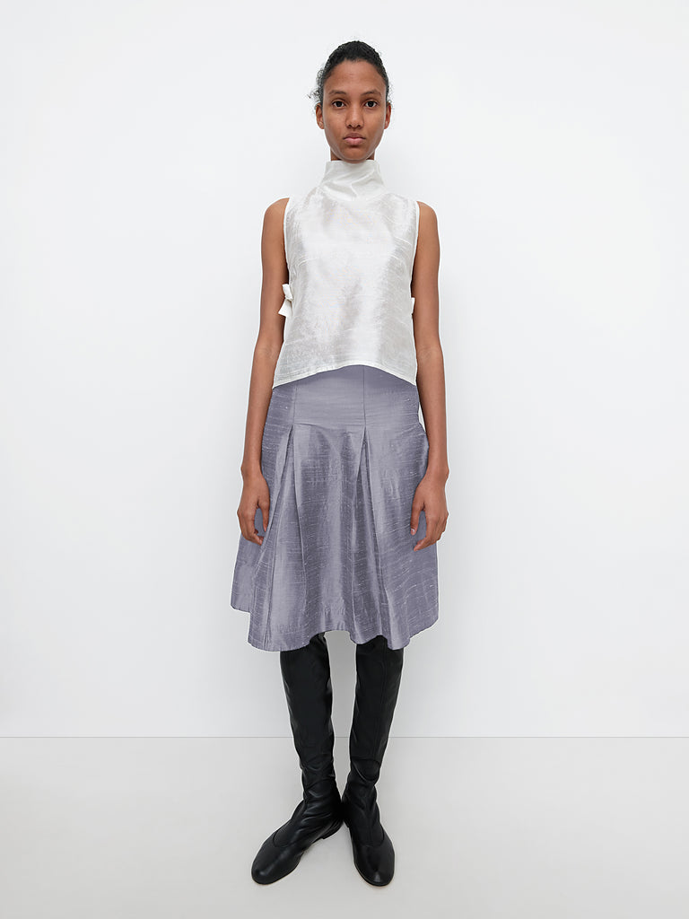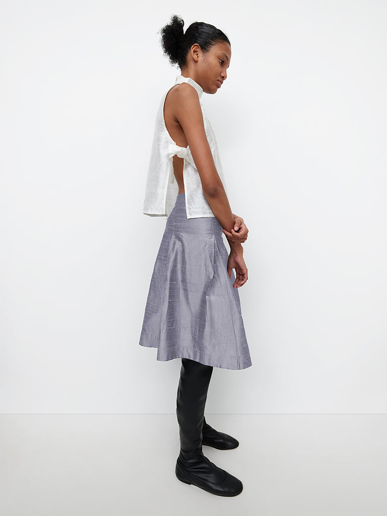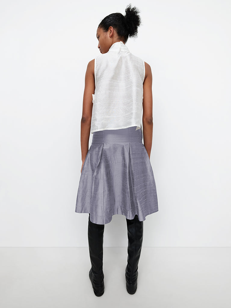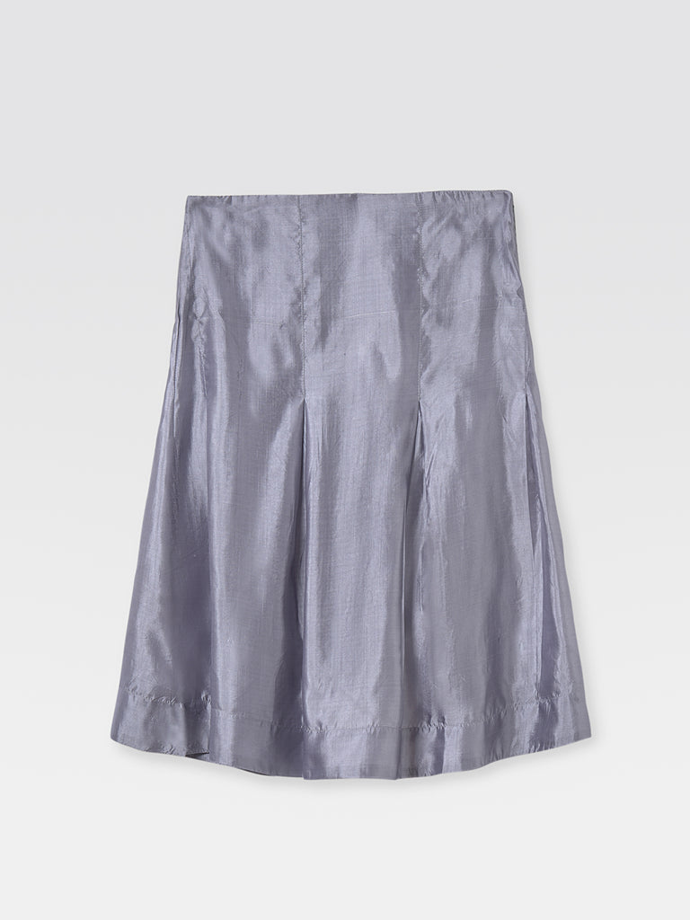Dark grey women's midi skirt crafted in wild silk with full pleated volume.