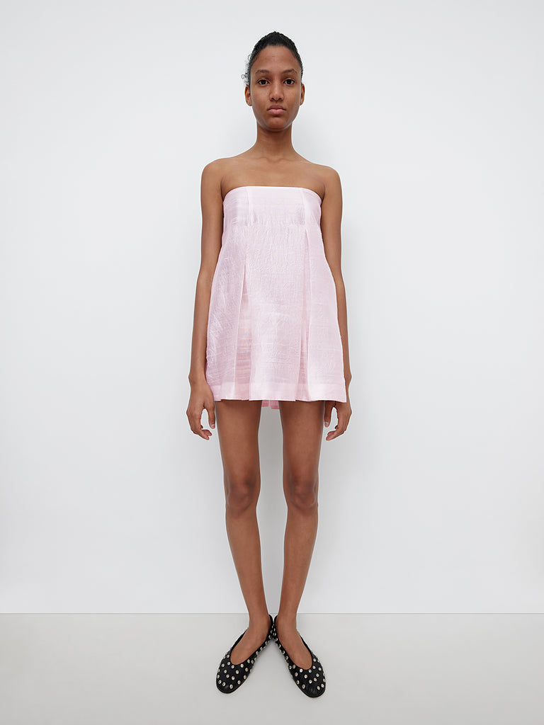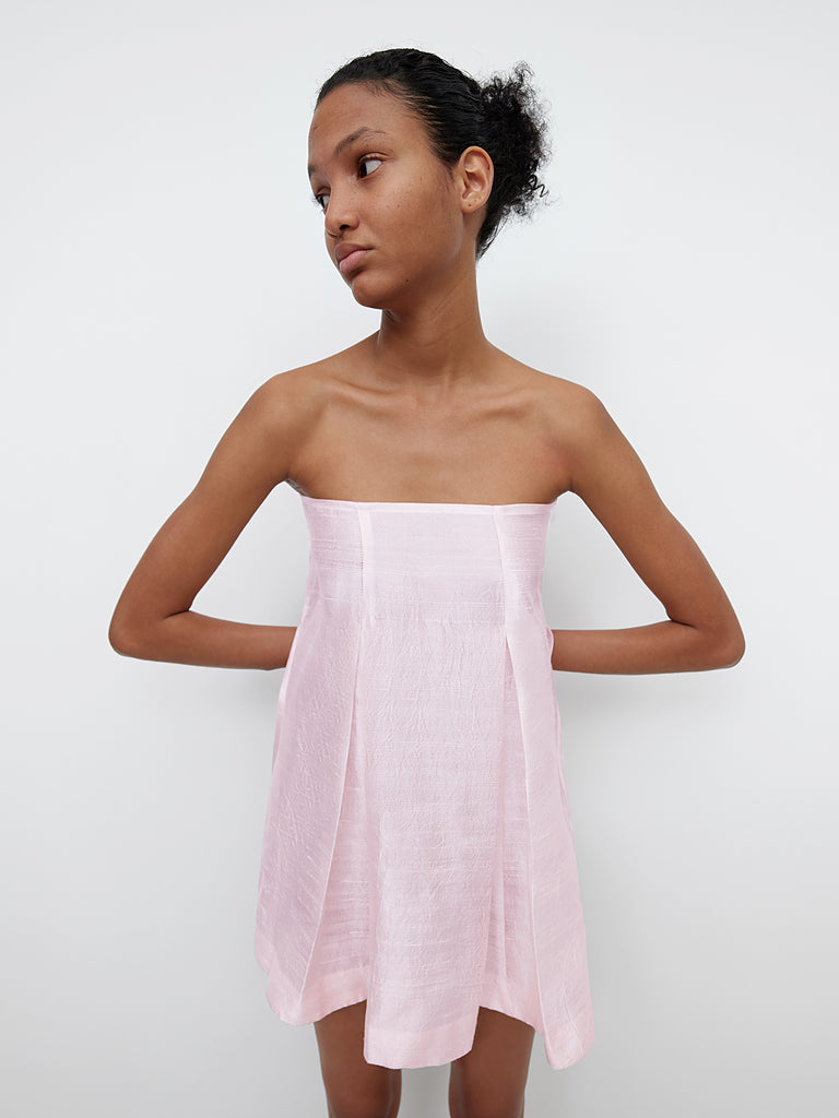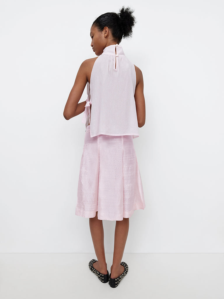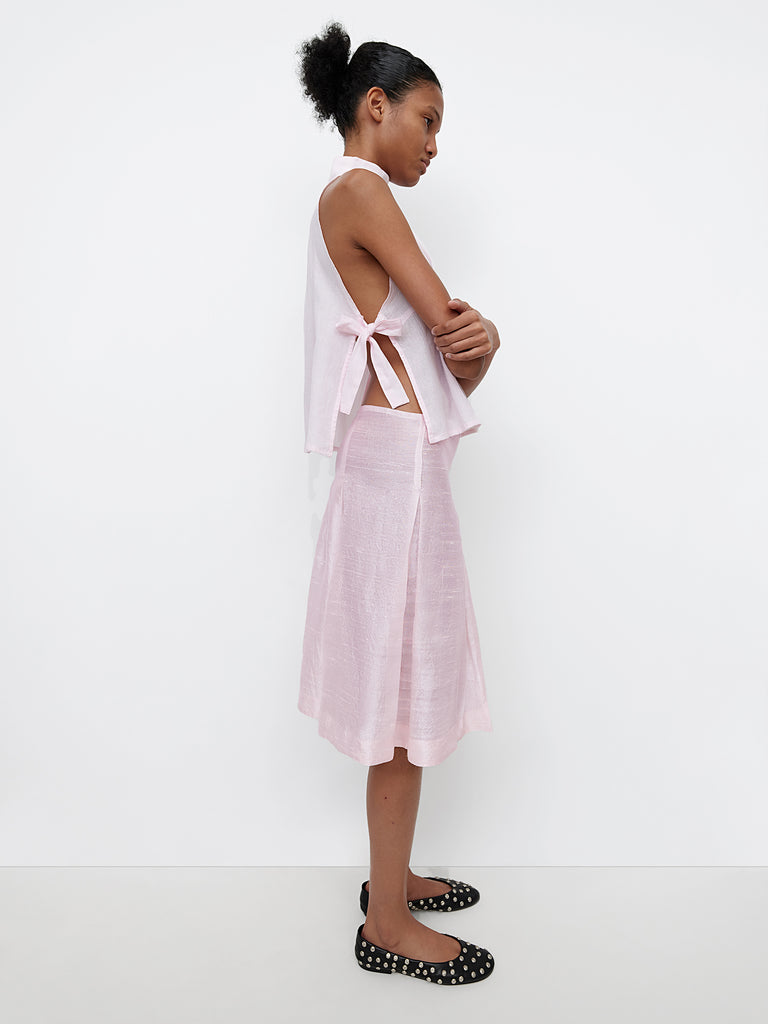 Pink women's midi skirt crafted in wild silk with full pleated volume.
