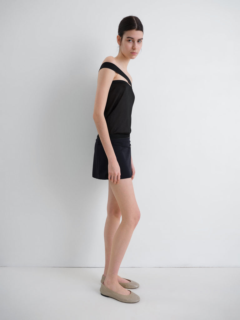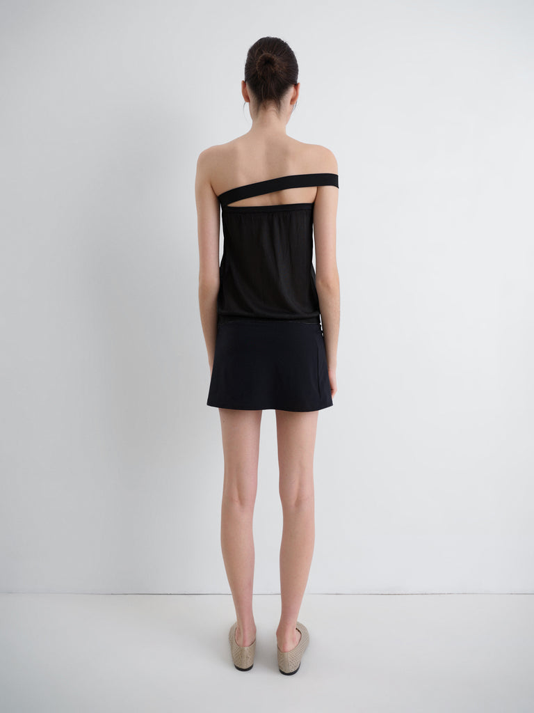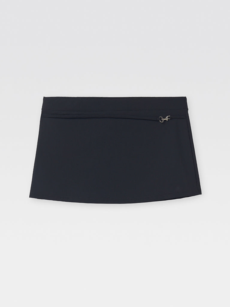 Black women's mini skirt in stretch fabric with a sleek low-rise design.