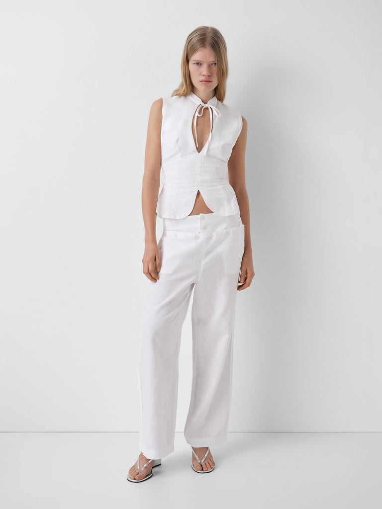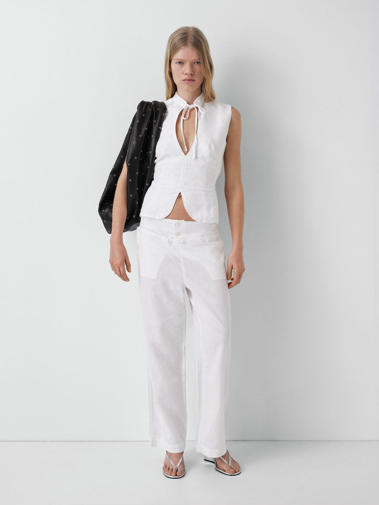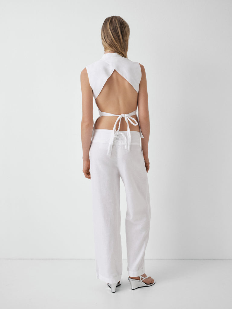 White top with front cut-out and open back.