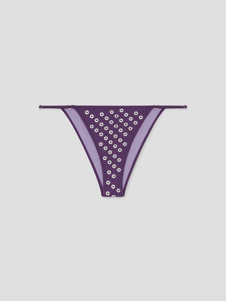 Lilac women's bikini bottom with round silver studs.