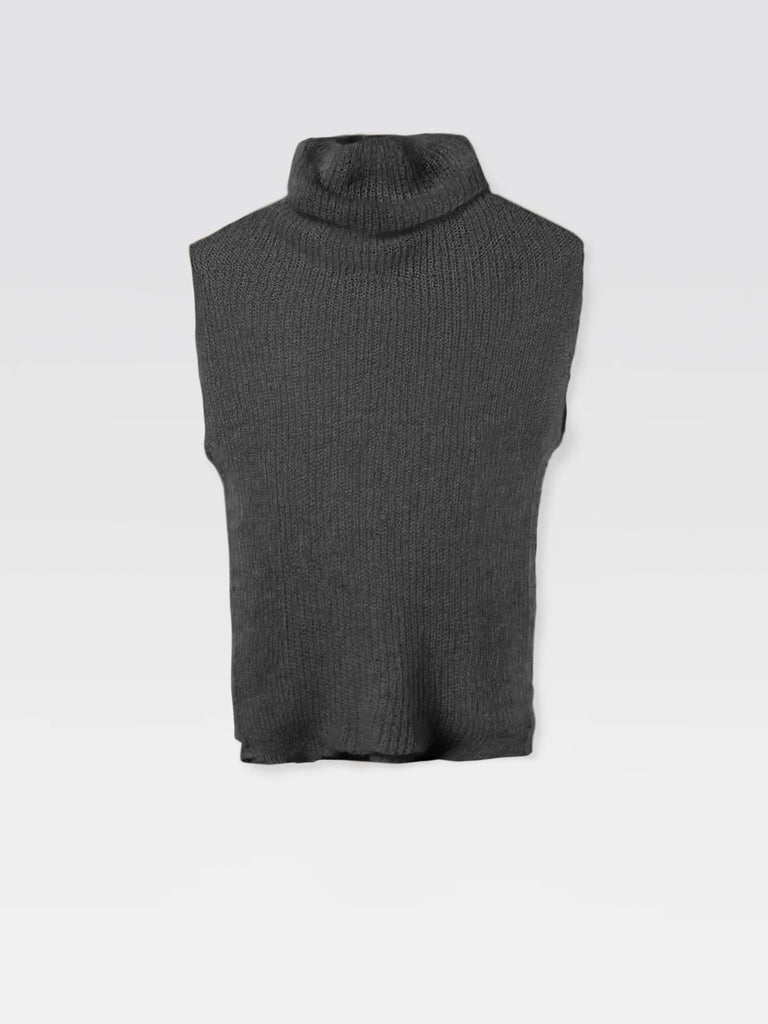 Mohair top in dark grey. Versatile: to be worn either as an off shoulder style or as a high neck top.