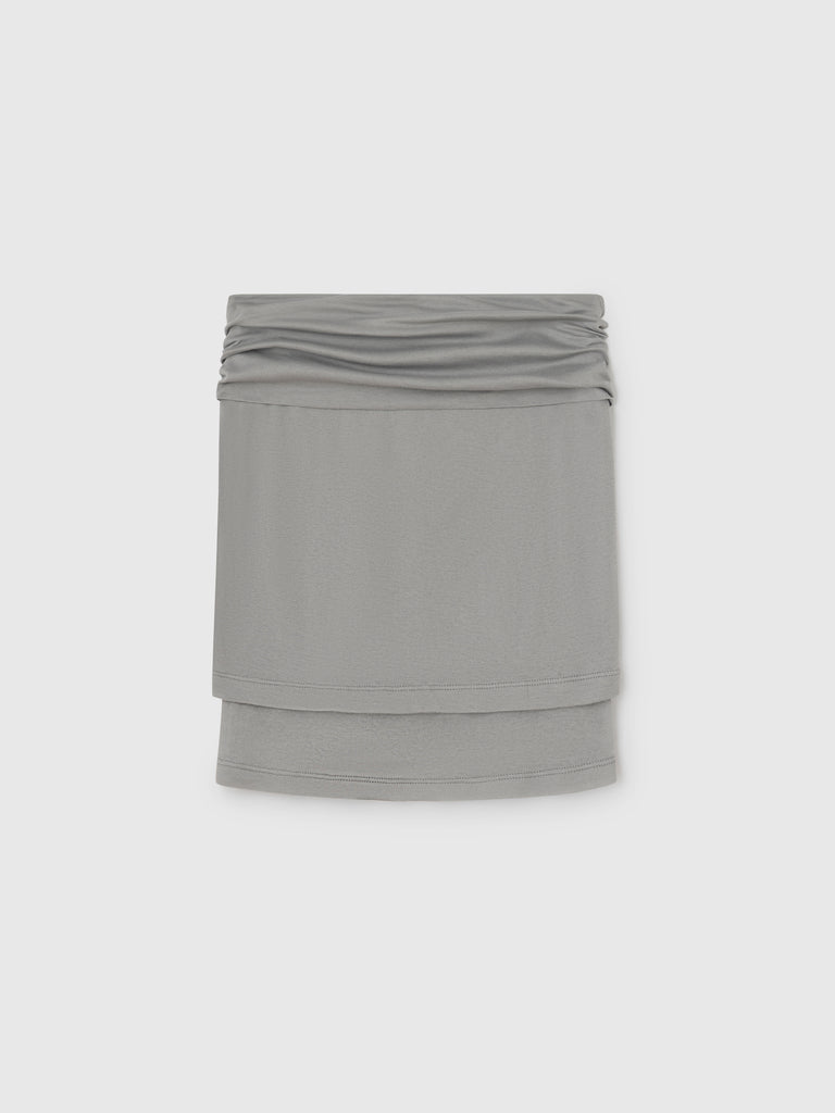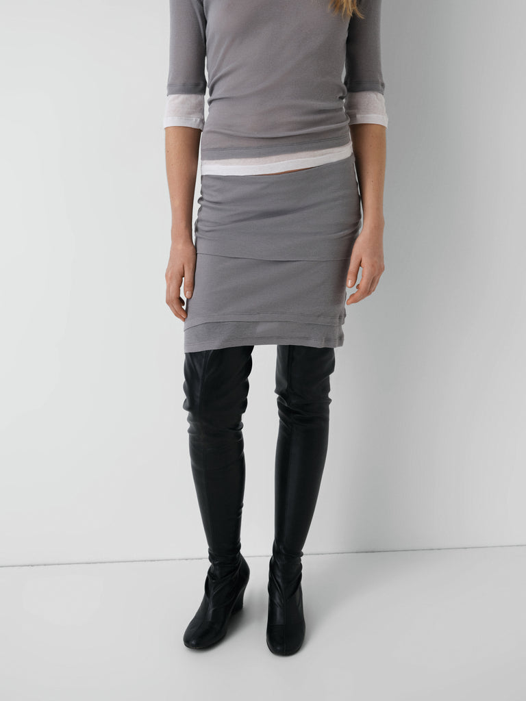 Grey midi skirt with soft layering effect.