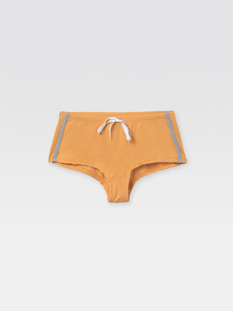 Orange women's fitted mini hot shorts.