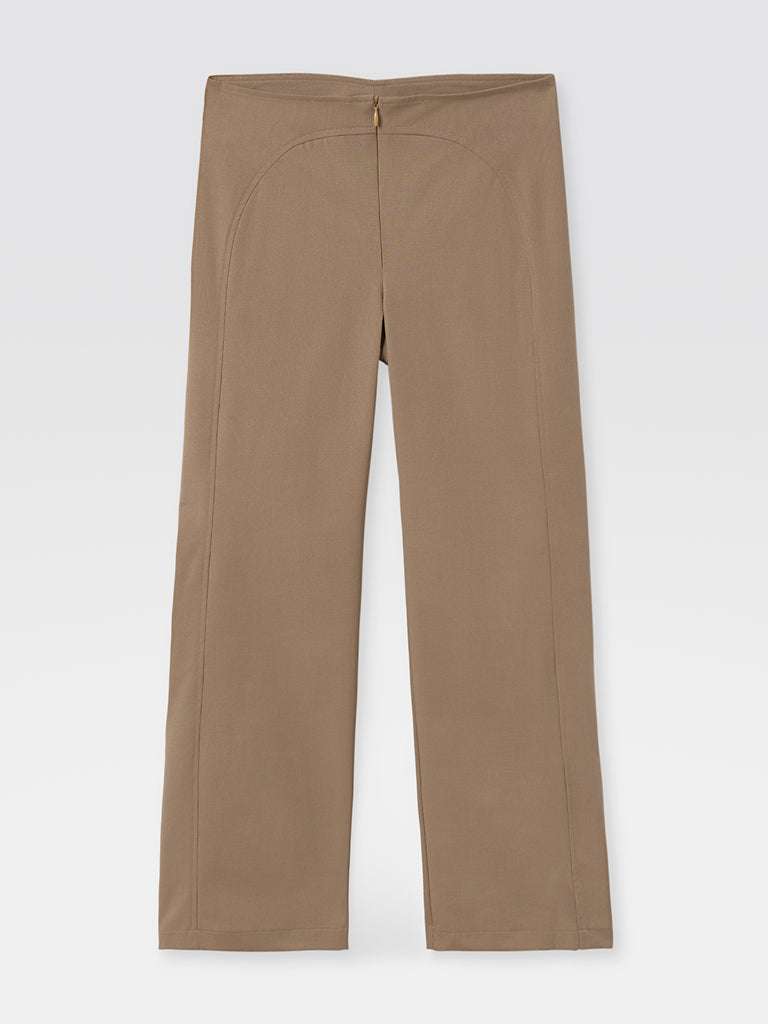 Fitted mid-rise women's beige pants crafted from a stretch fabric for a sleek and streamlined fit. Designed with a side seam detail and an invisible central zipper for a clean finish.