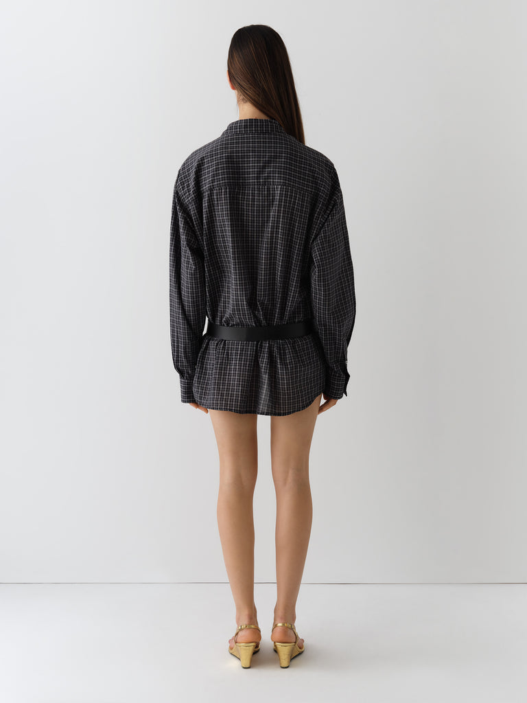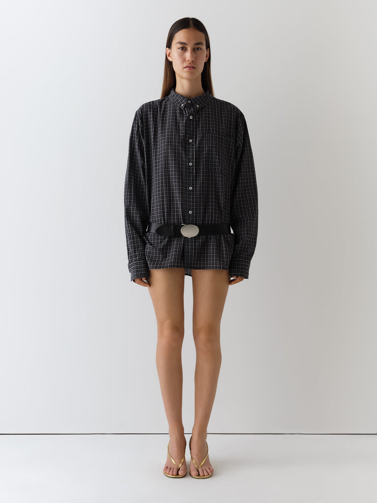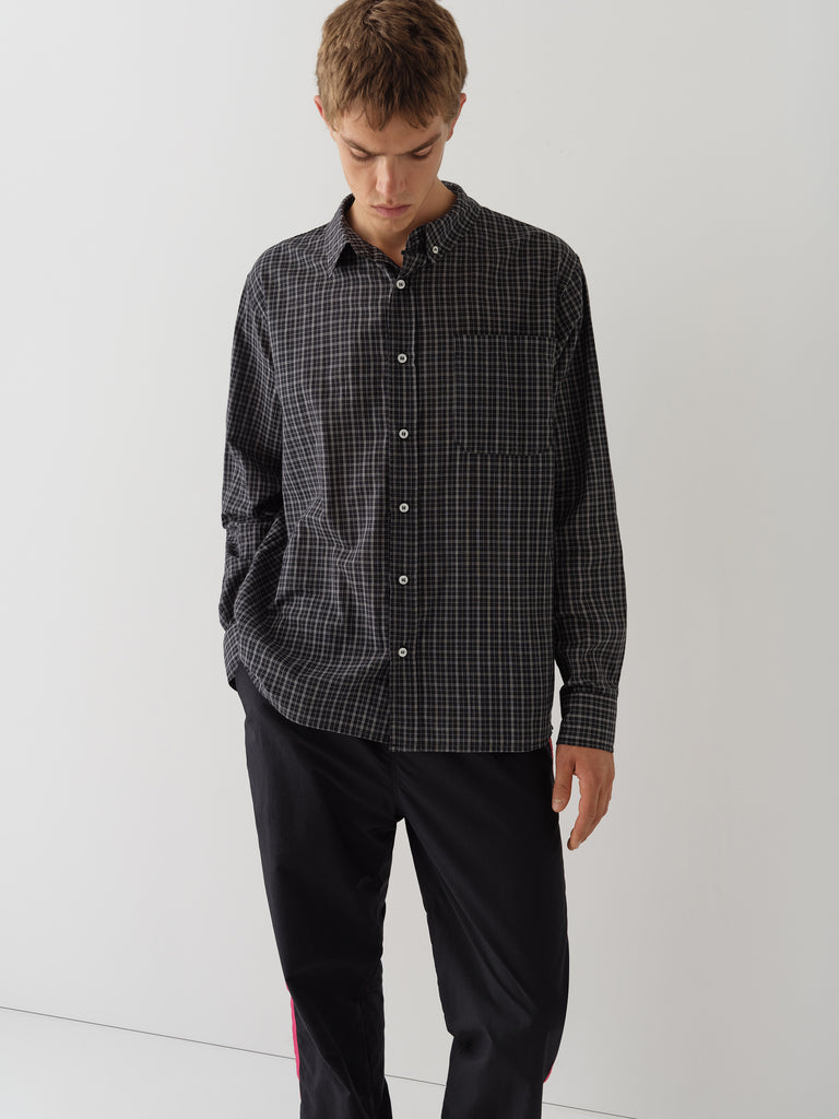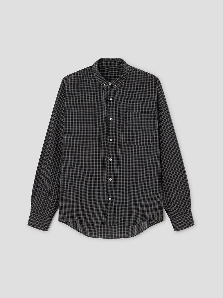 Grey checkered shirt with front pocket.
