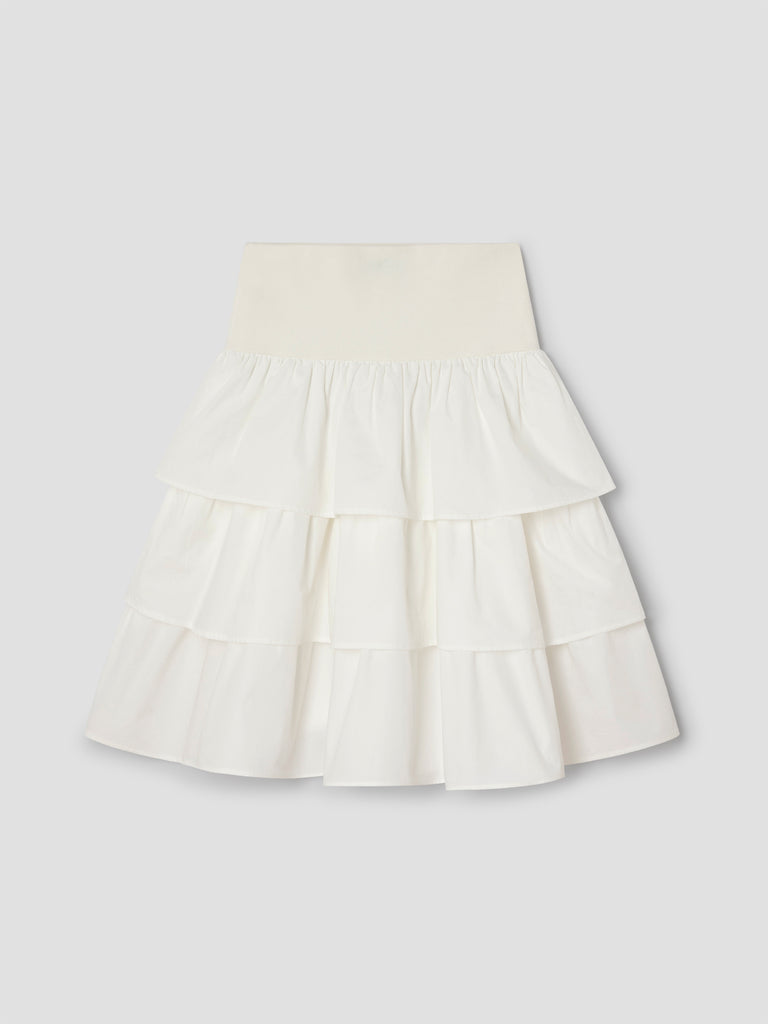 White low-rise midi skirt with wide waistband.