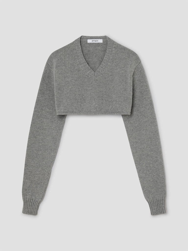 Cropped knit sweater in a cashmere-wool blend. A timeless grey tone with a soft ribbed V-neck, long sleeves and a cropped fit. Finished with ribbed edges for a touch of texture, this women’s jumper is lightweight and cozy.