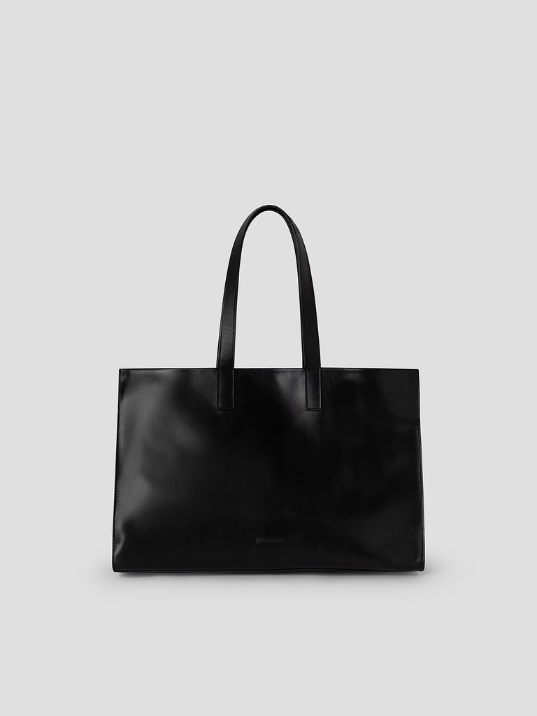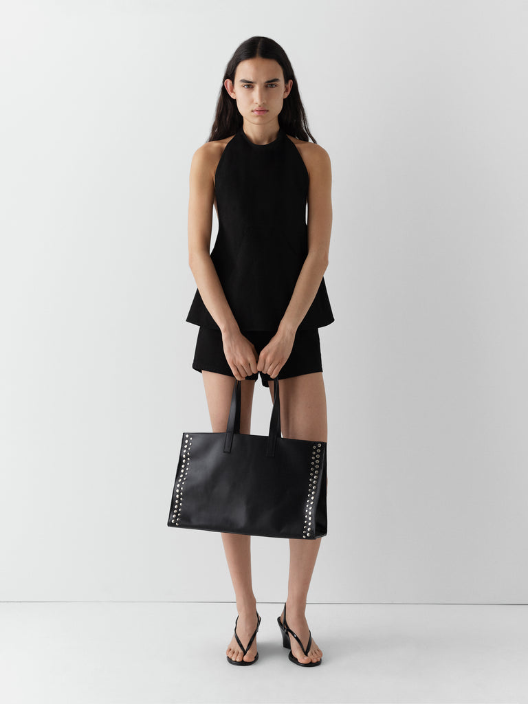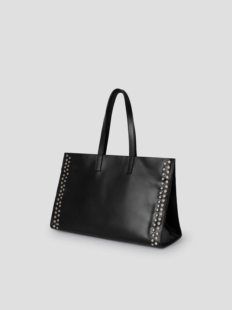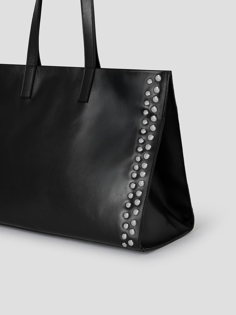 Black leather shopper bag with silver studs.
