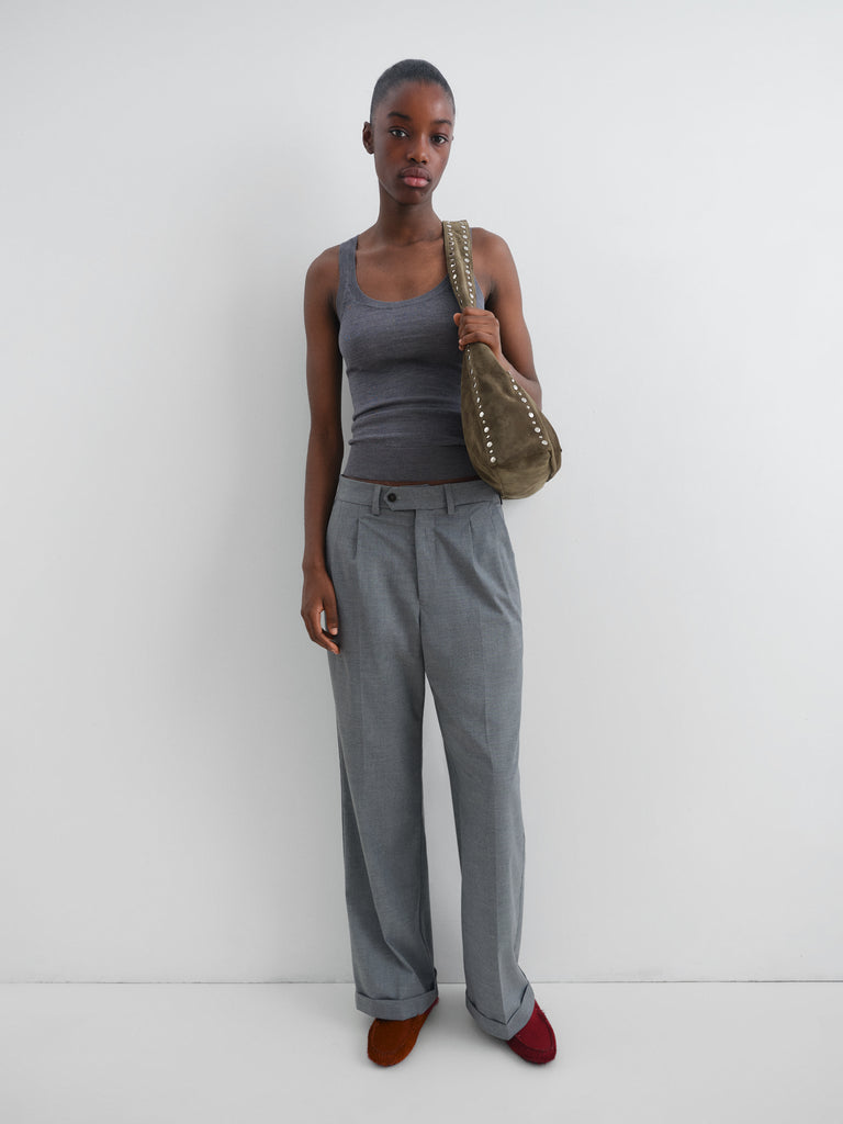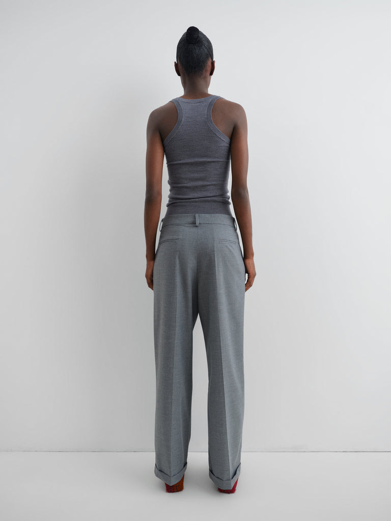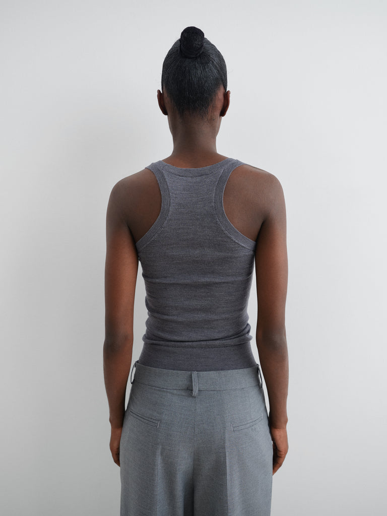 Grey semi-sheer wool tank top.