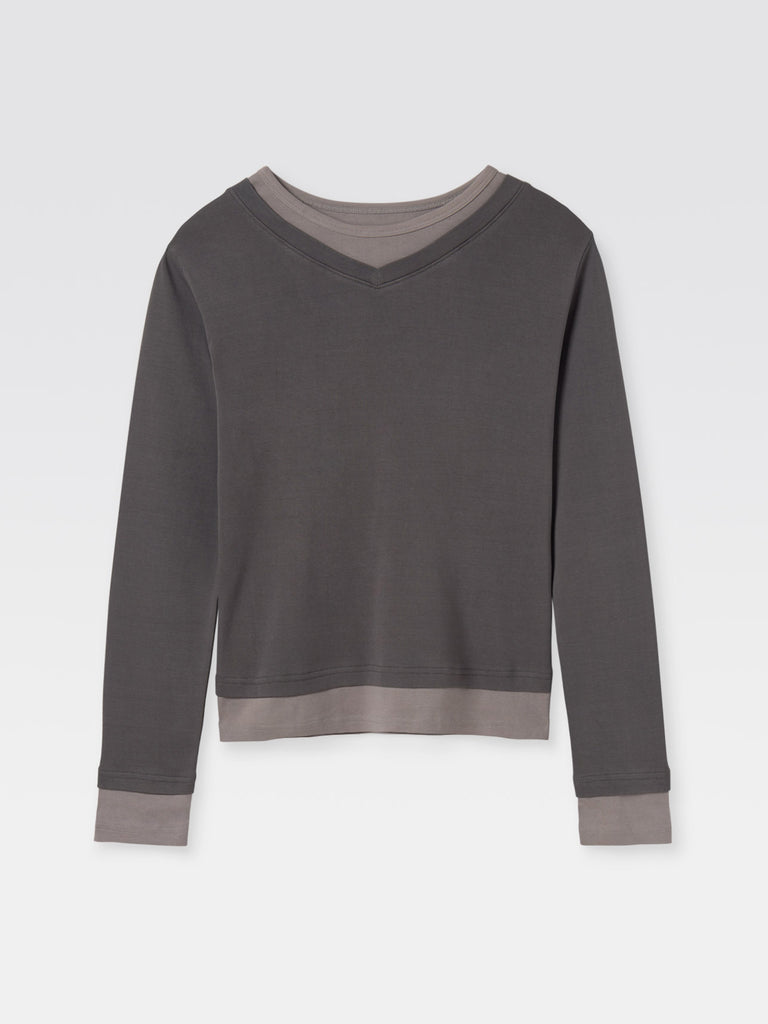 Dark grey and grey long-sleeve t-shirt with blue layered effect.