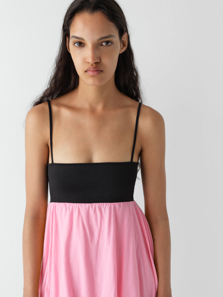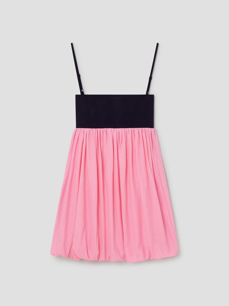 Black and pink mini dress with ballooned skirt.